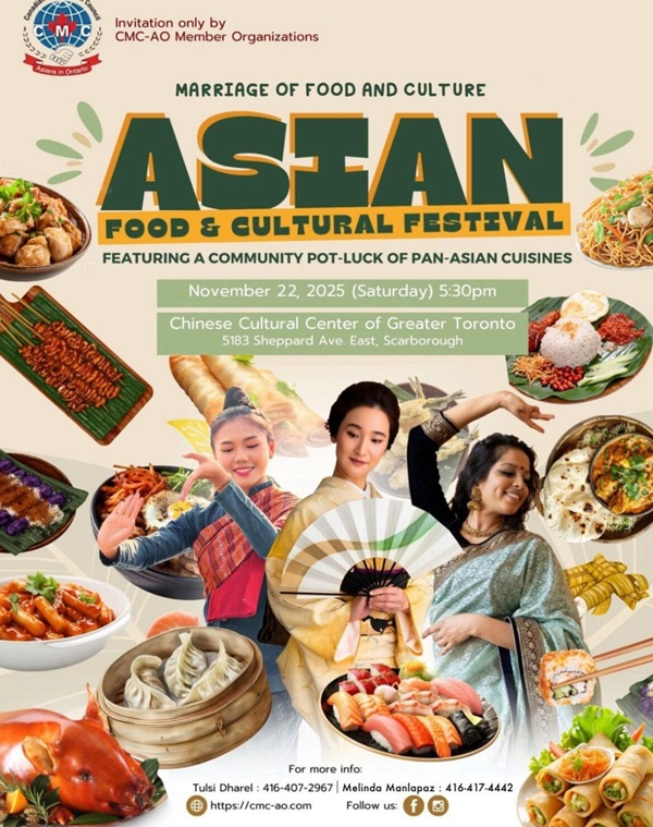CMC is hosting 2025 Asian Food and Cultural Festival on November 22, 2025 at the Chinese Cultural Centre of Greater Toronto.